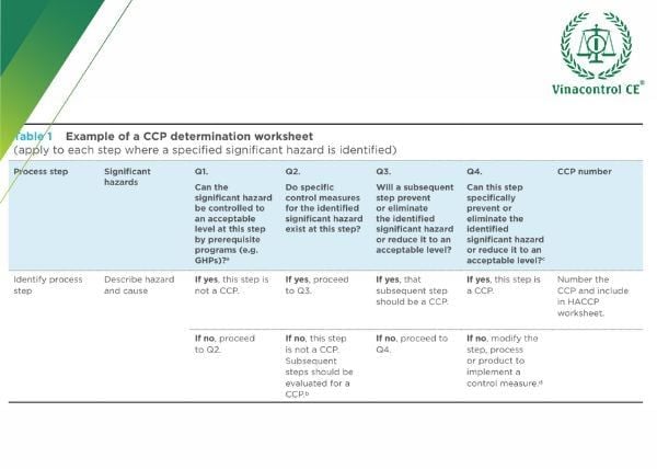 Ví dụ về bảng tính CCP trong HACCP Codex 2022